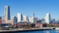 横浜コスモワールドとインターコンチネンタルホテルの海沿いの風景