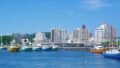 夕暮れの横浜みなとみらいと観覧車のライトアップ